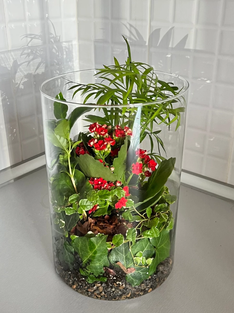 Közepes florárium - hengeres üvegkehelyben